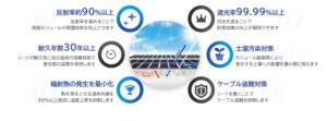 →モジュール裏面に可視光線を反射させて発電量UPさせ、劣化の要因である紫外線は吸収します。