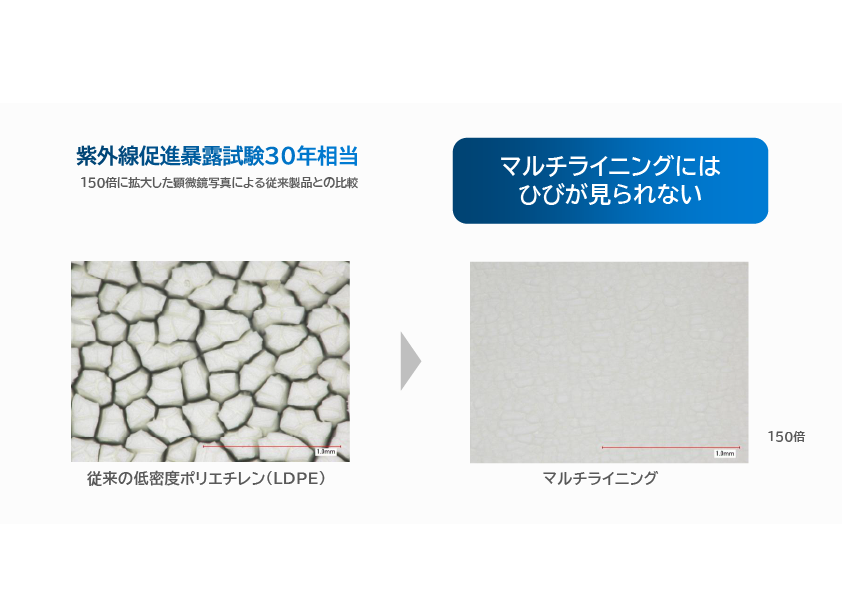 マルチライニングの耐久性(紫外線促進暴露試験30年相当)